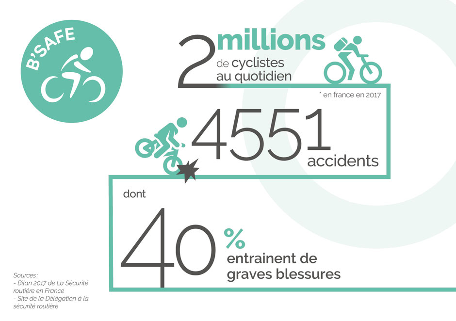 Avec B’Safe nous souhaitons lever ce frein et rendre la pratique plus sûre et inciter ceux qui hésitent à prendre leur vélo au quotidien.